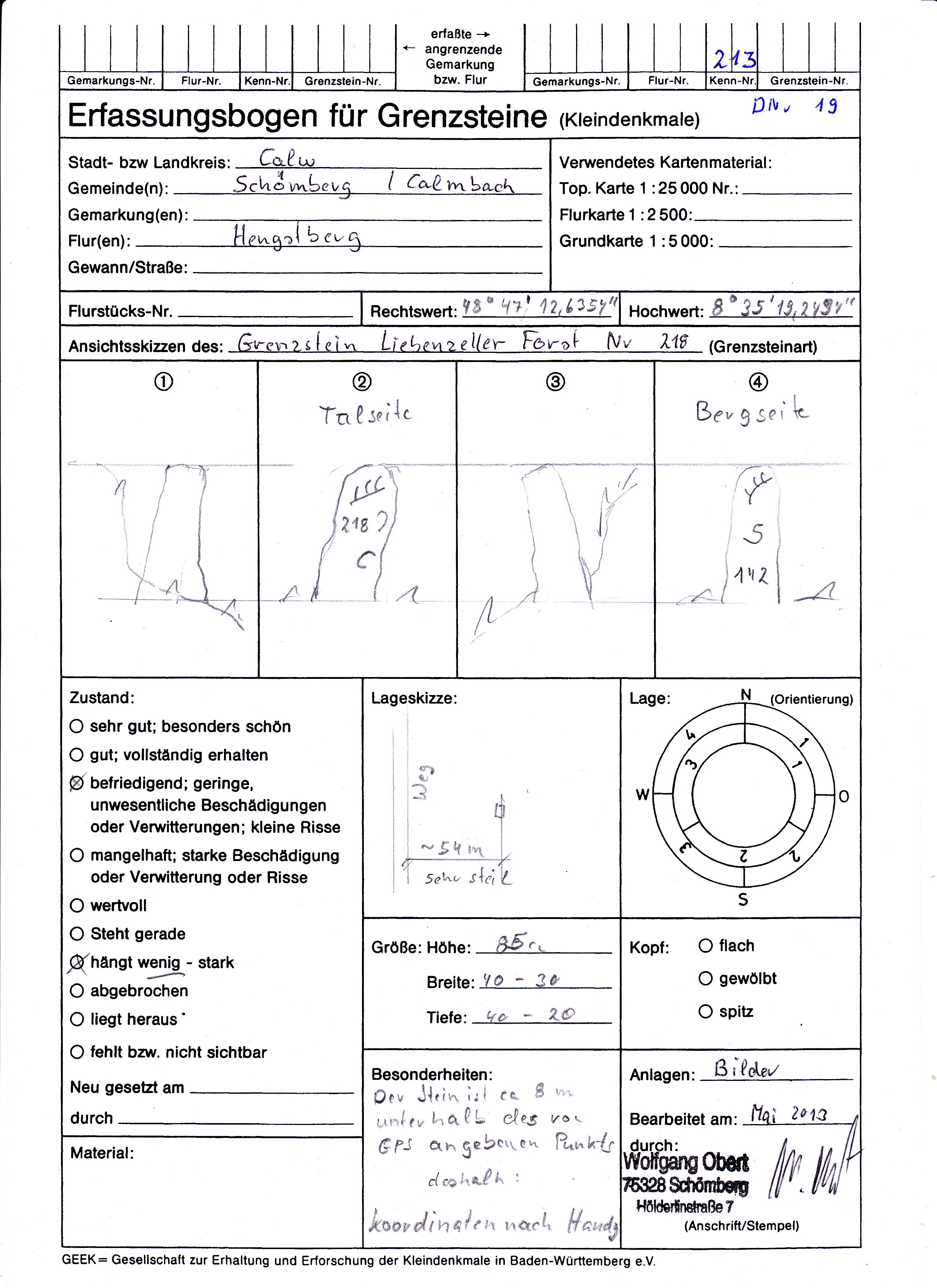 Stein Nr. 218... Erfassungsbogen ...Bilder