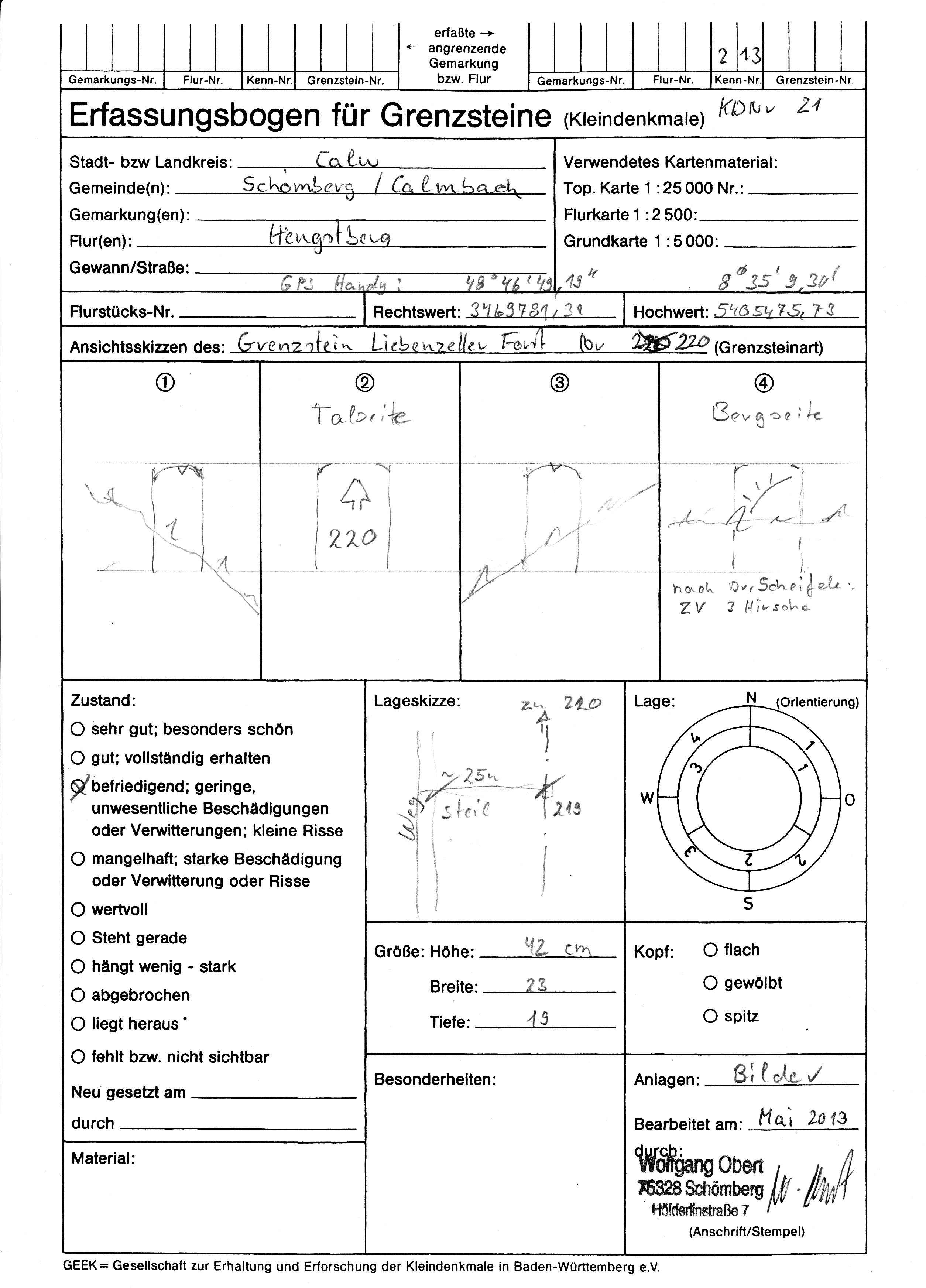 Stein Nr. 220... Erfassungsbogen ...Bilder