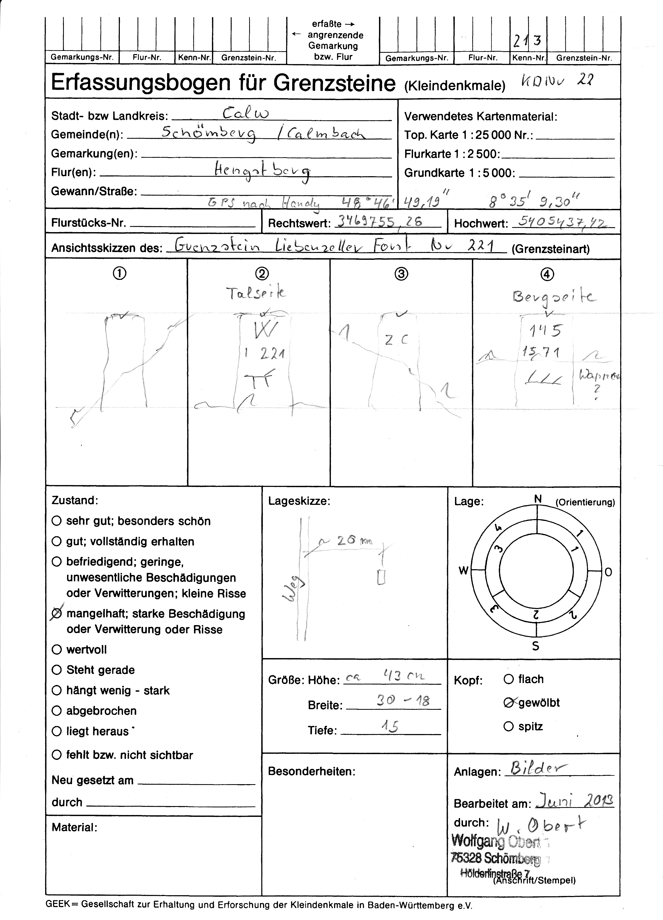 Stein Nr. 222... Erfassungsbogen... Bilder