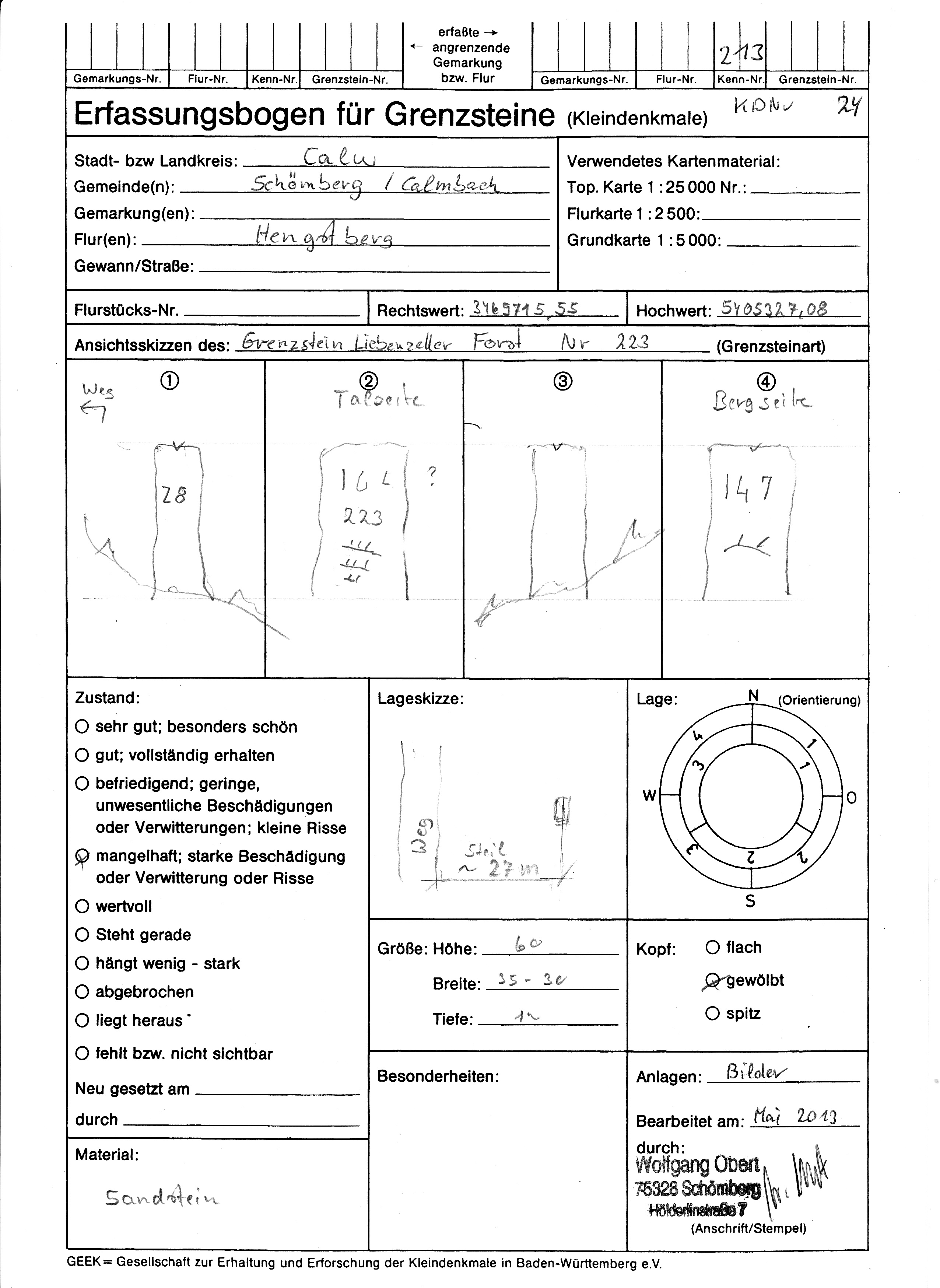 Stein Nr. 223... Erfassungsbogen ...Bilder