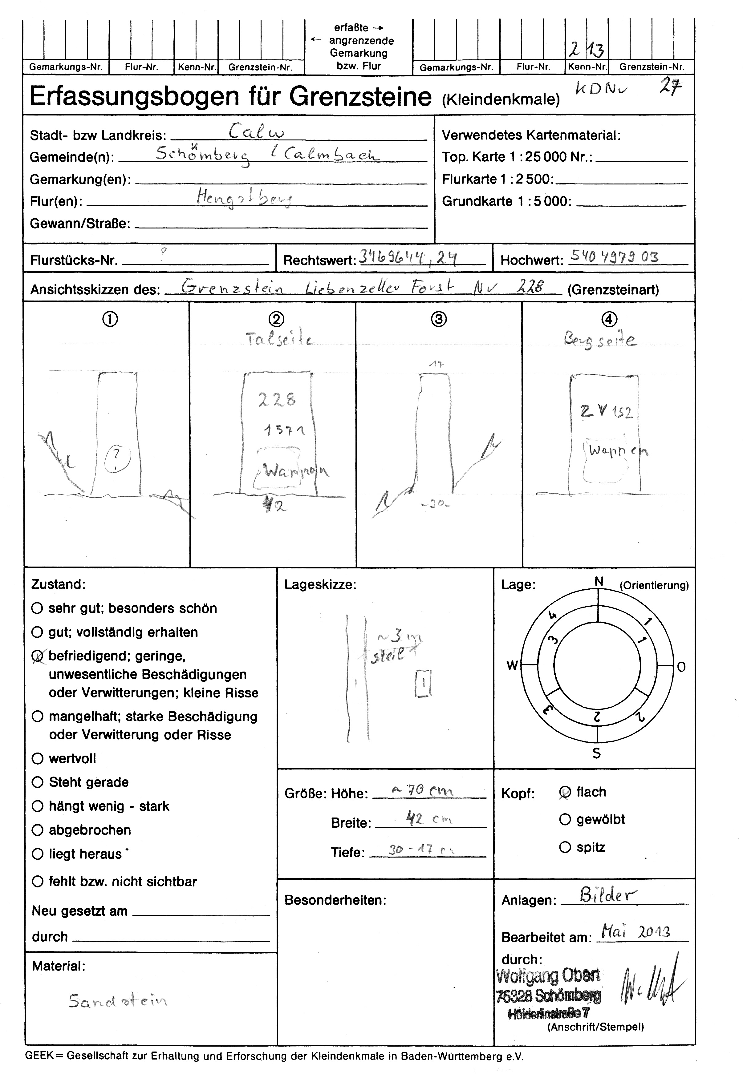 Stein Nr. 228 ...Erfassungsbogen ...Bilder