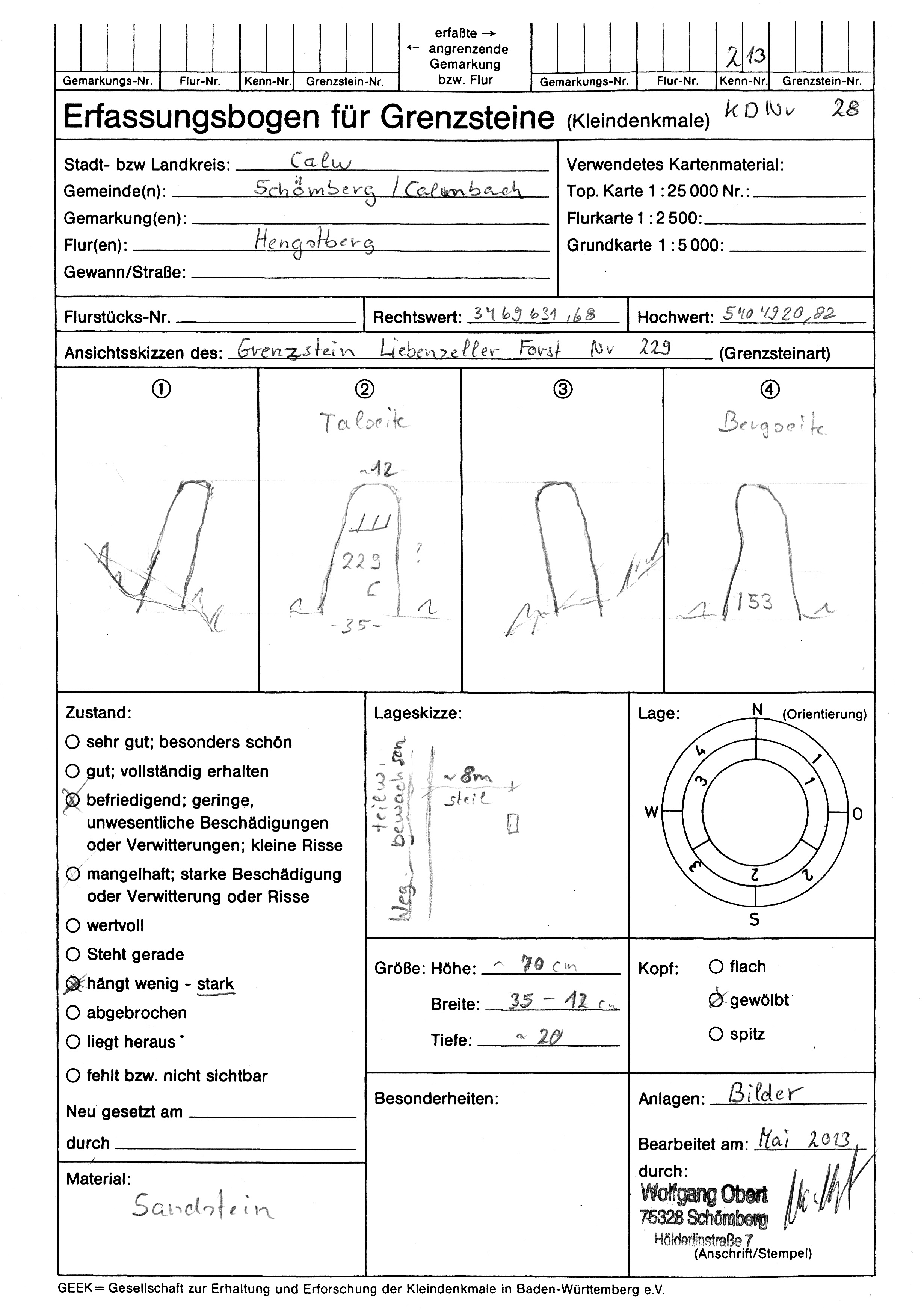 Stein Nr. 229... Erfassungsbogen... Bilder