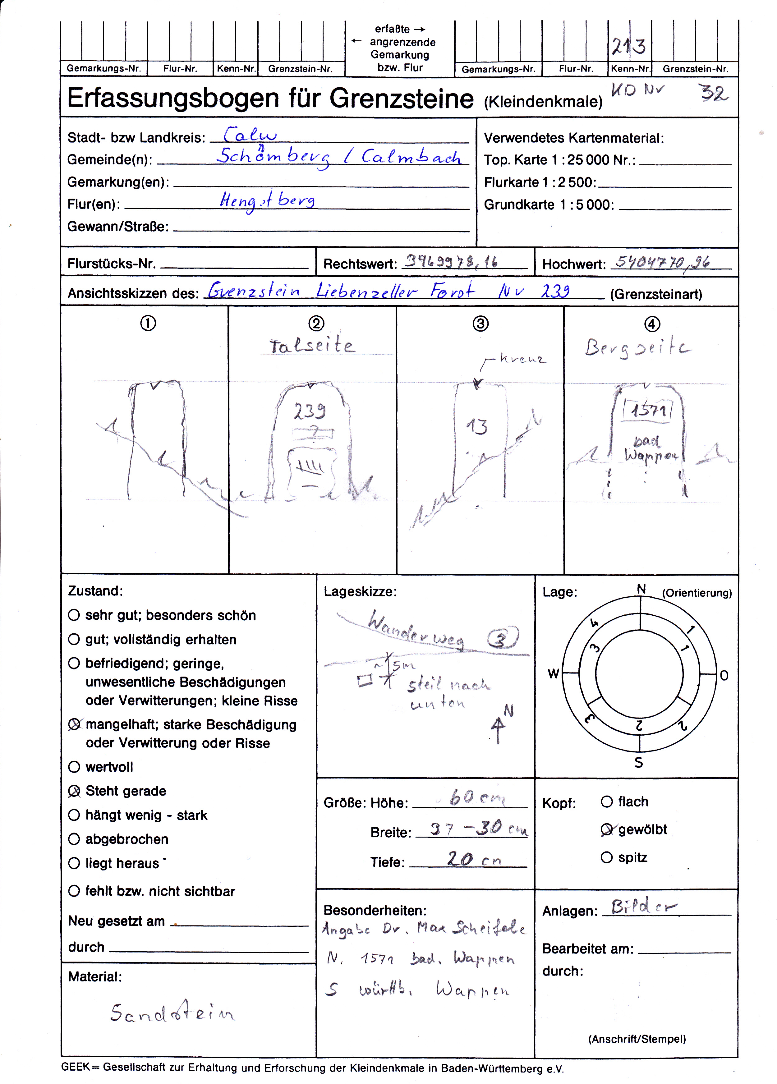 Stein Nr. 239... Erfassungsbogen ...Bilder