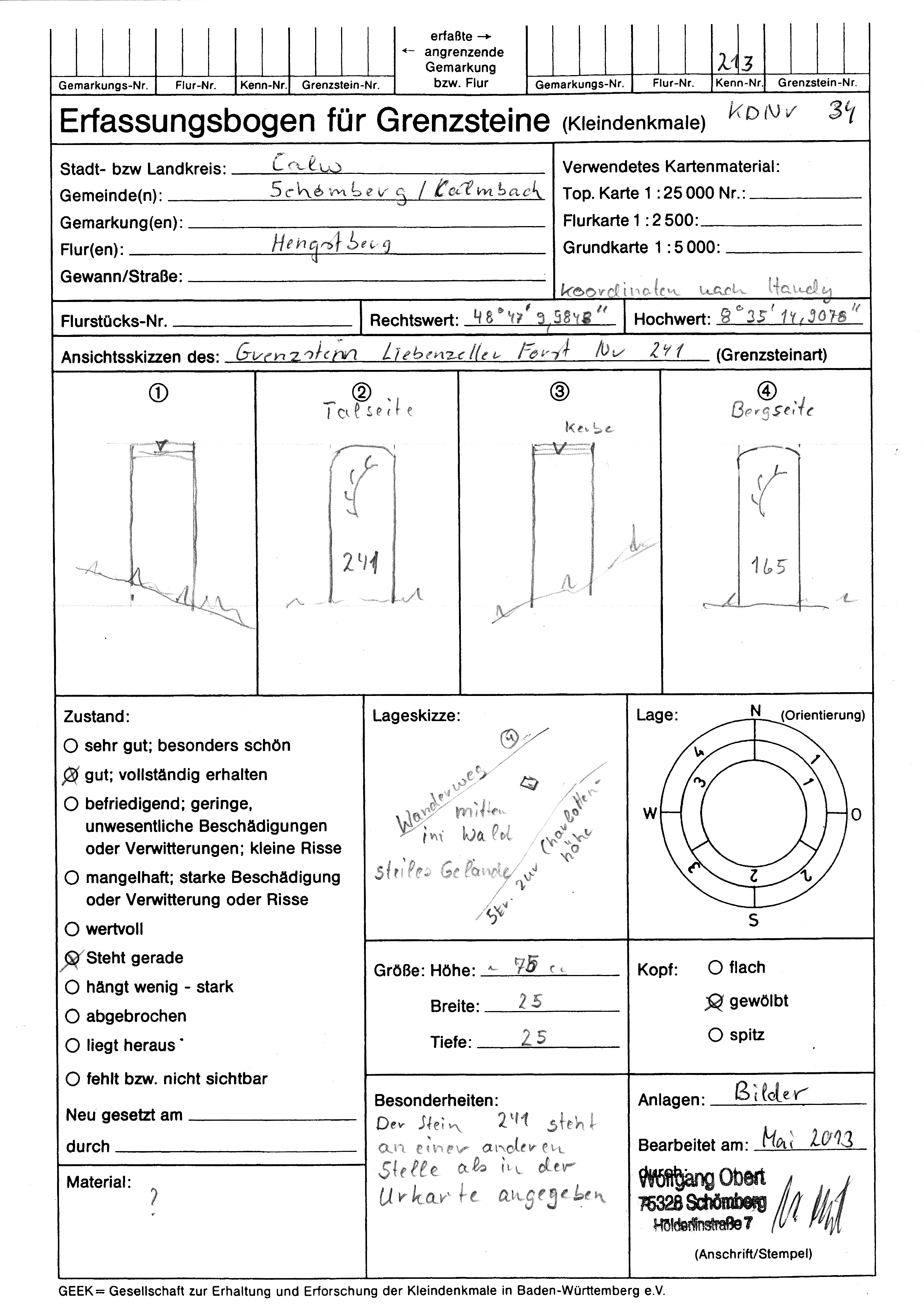 Stein Nr. 241 ...Erfassungsbogen ...Bilder