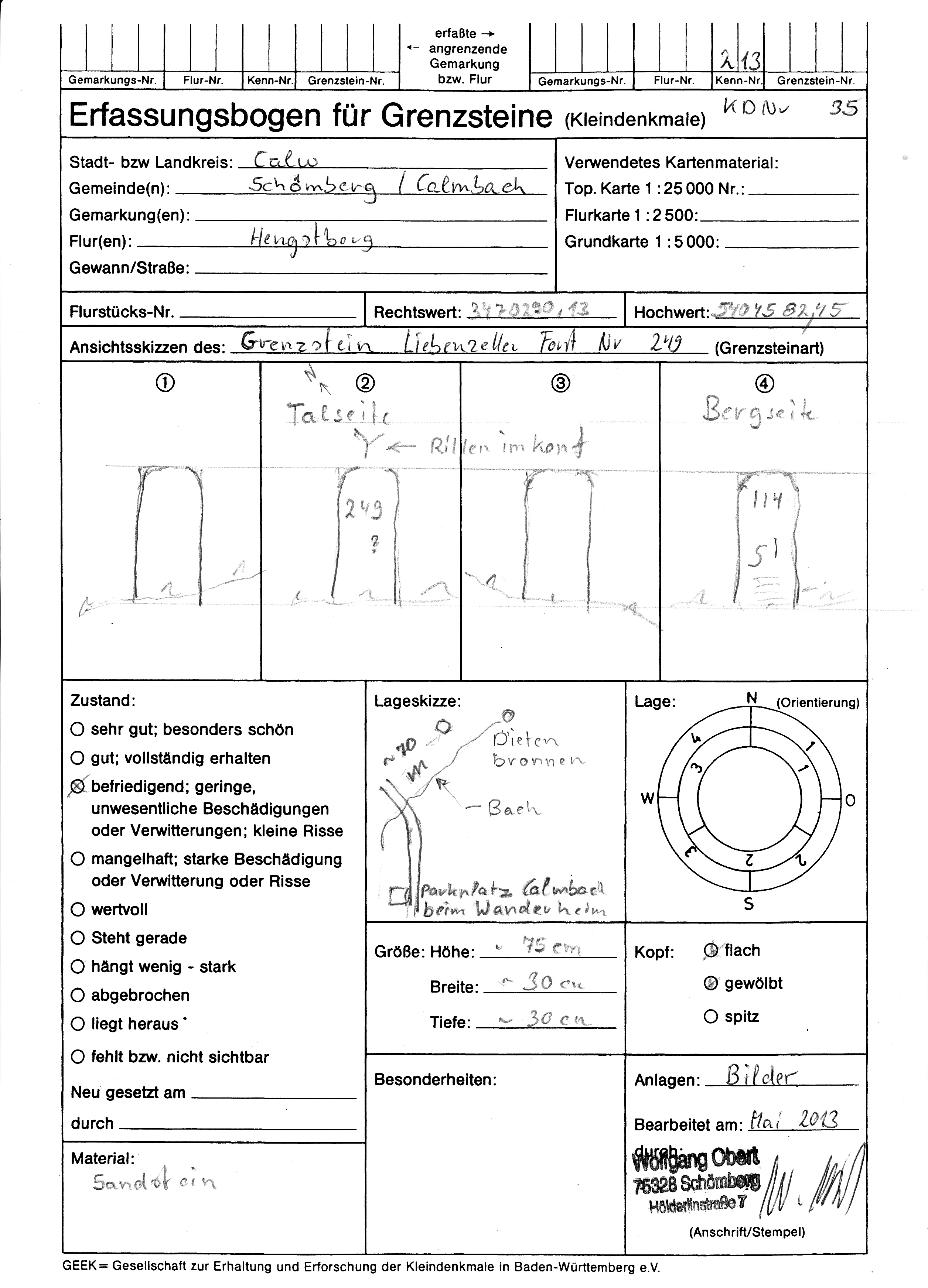 Stein Nr. 249... Erfassungsbogen ...Bilder