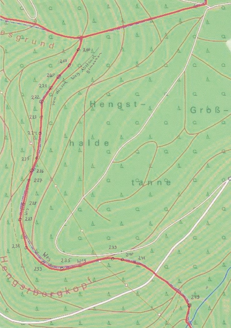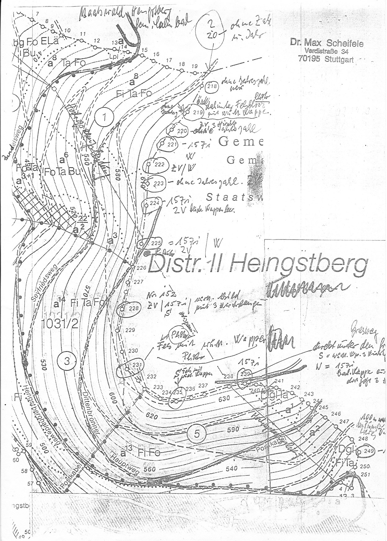 Aufnahme der Grenzlinie durch Dr. Max Scheifele 1998, handschriftliche Eintragungen